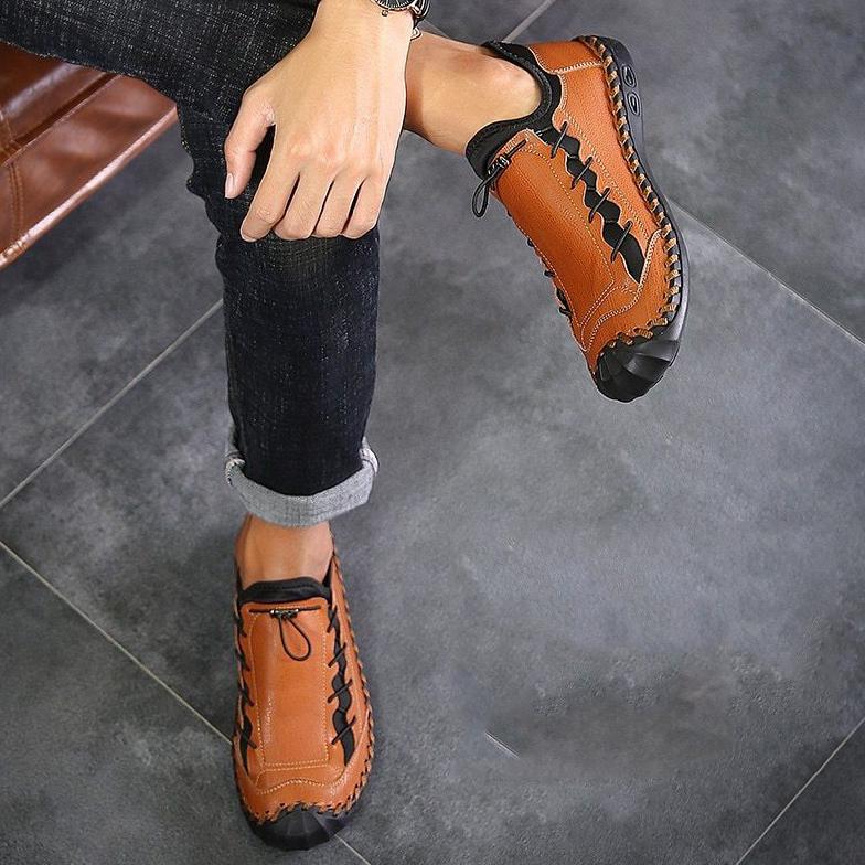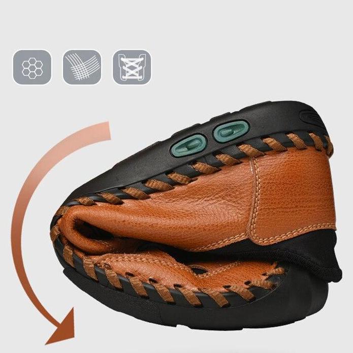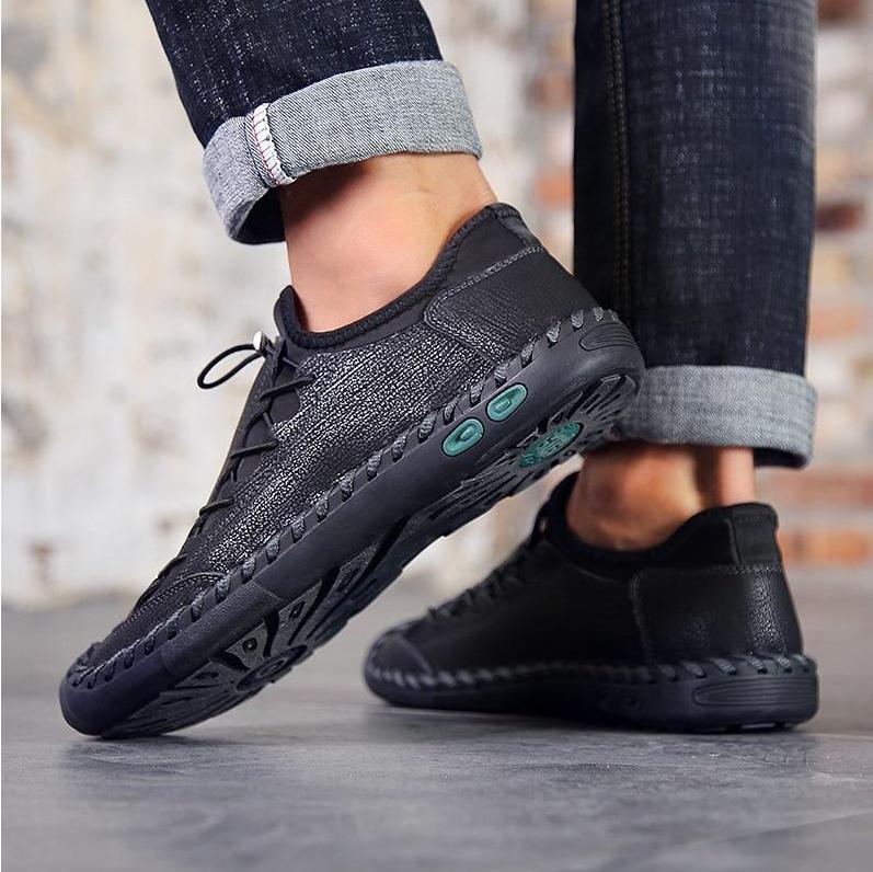 Men Hand Stitching Leather Non Slip Anti-collision Large Size Casual Shoes