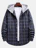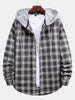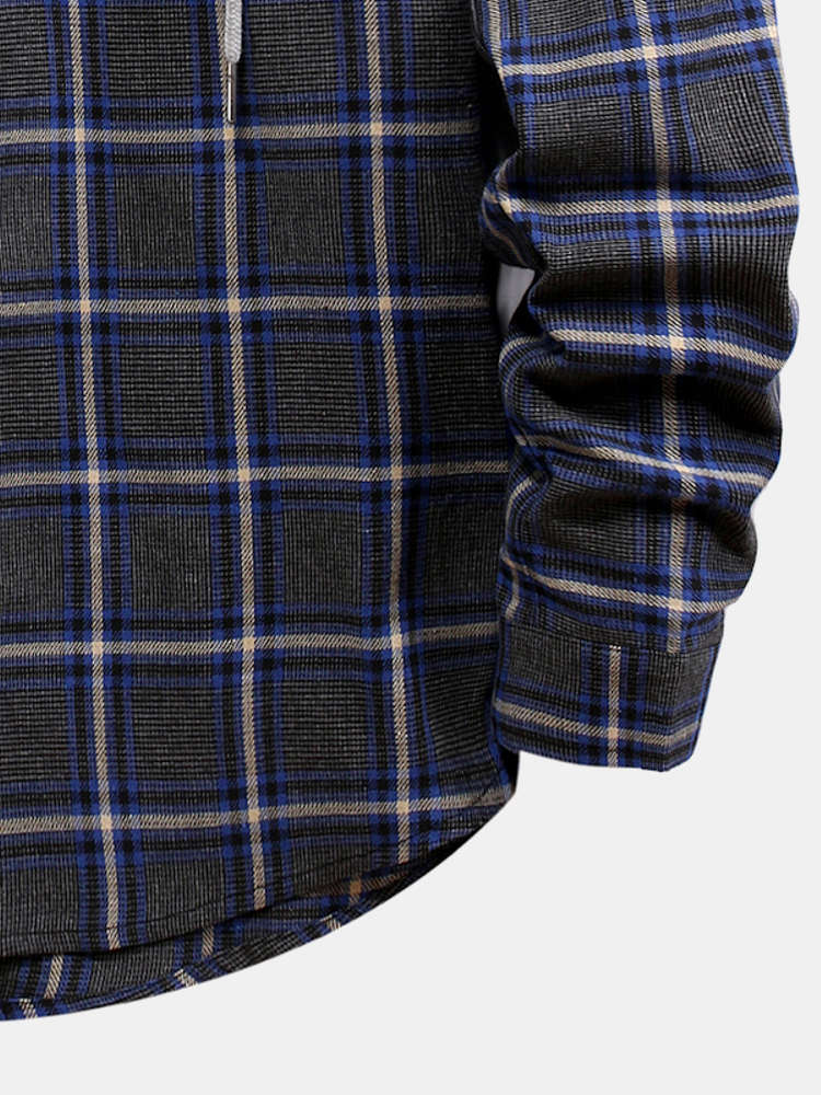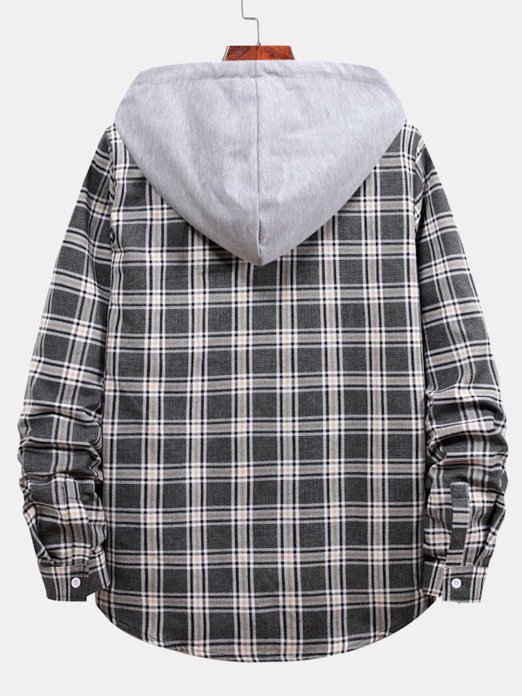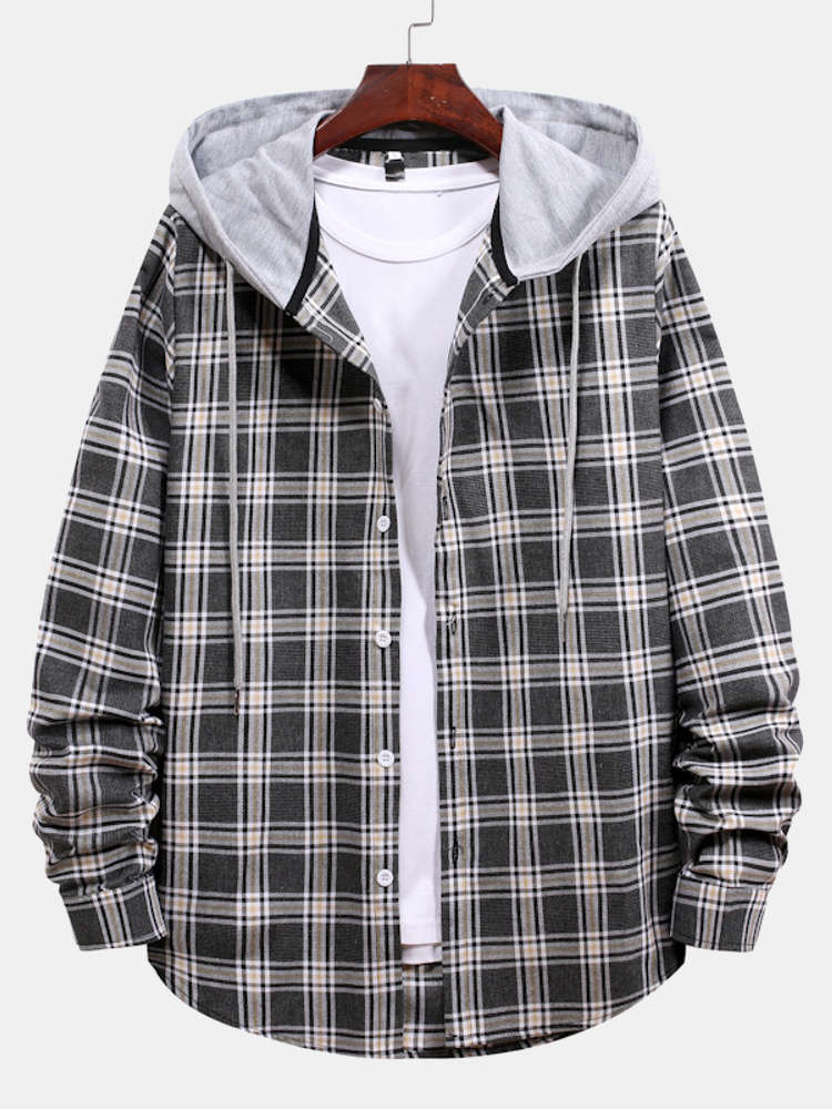 Button Up Drawstring Hooded Plaid Shirts