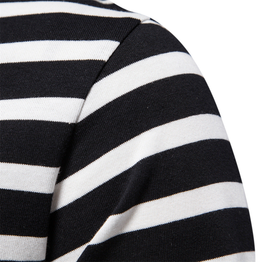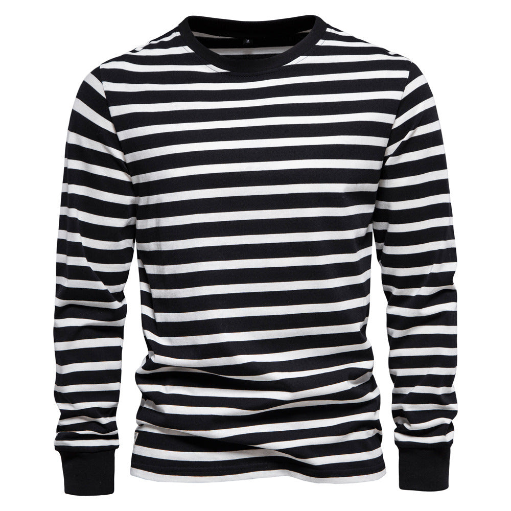 Casual Striped Top Round Neck Men's Cotton T-Shirt