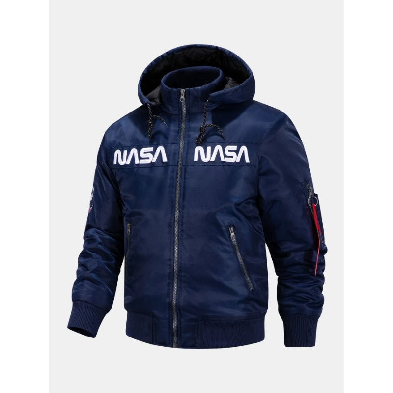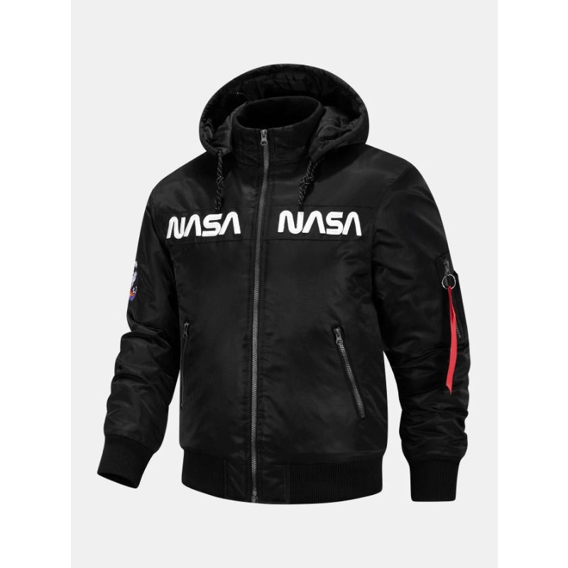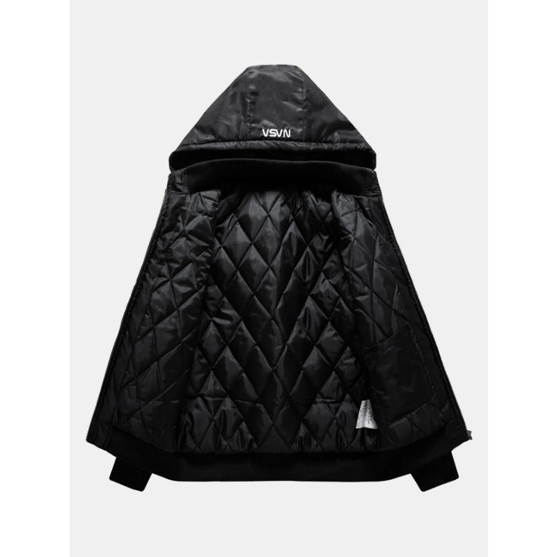 Embroidery Quilted Lined Detachable Coat Hooded Bomber Jacket