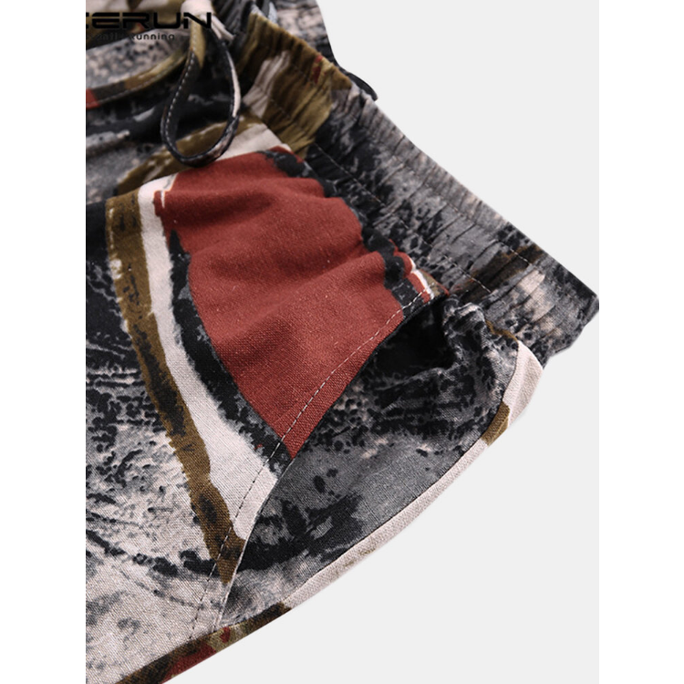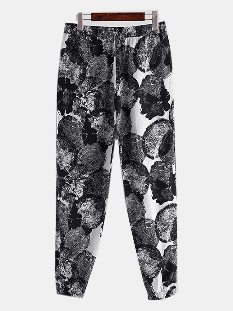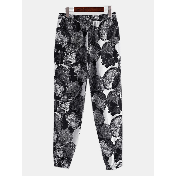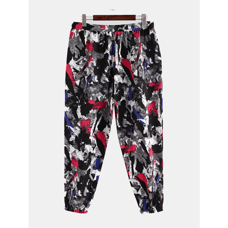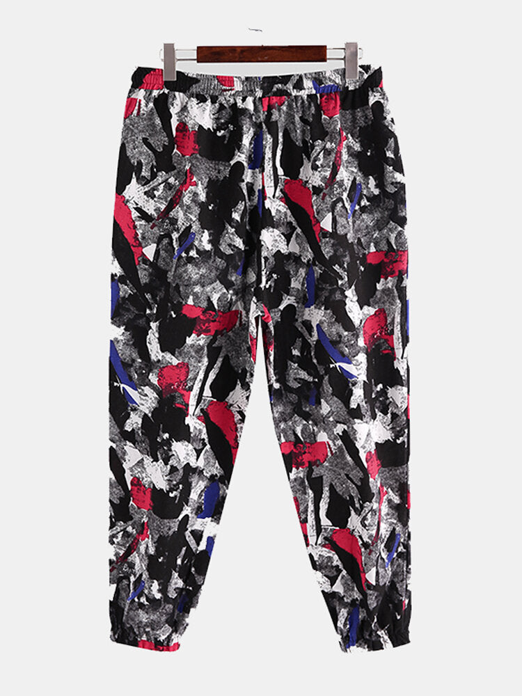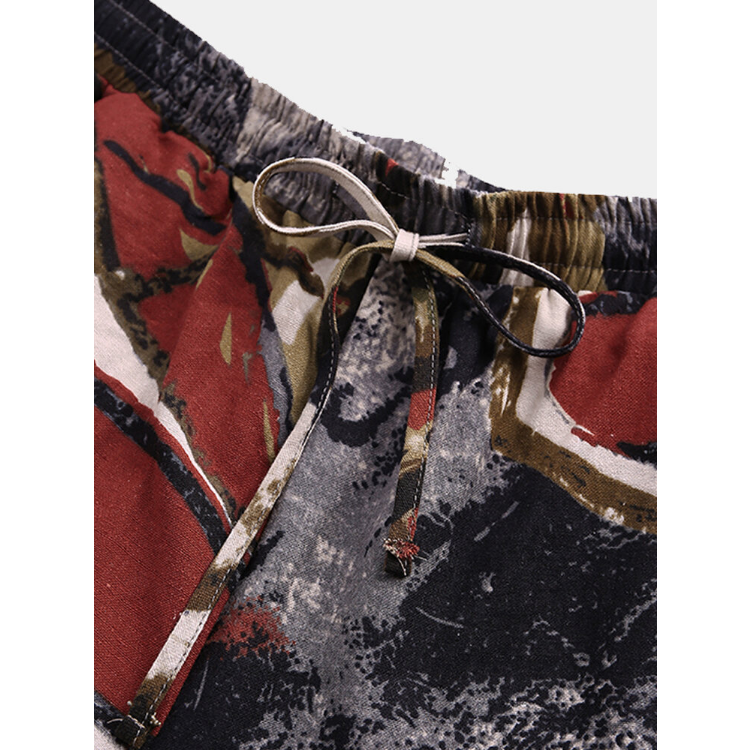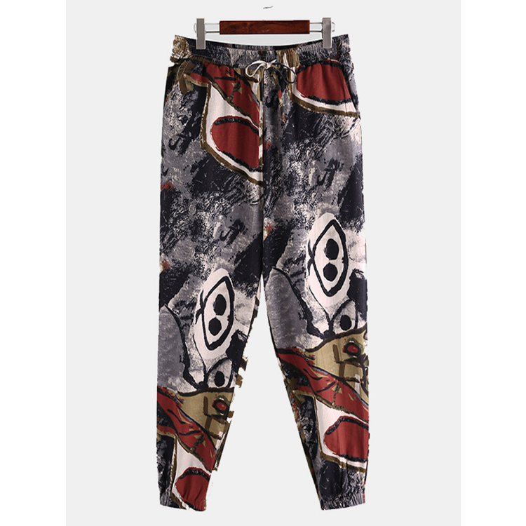 Men Cotton Ethnic Graffiti Print Oriental Harem Pants Plus Size