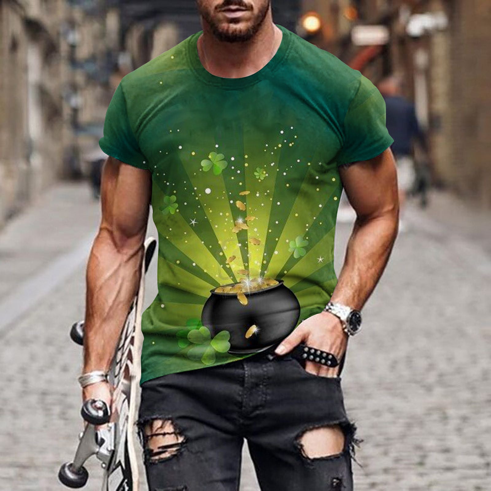 Men's 3D Printed St. Patrick Crew Neck Short Sleeve T-shirt