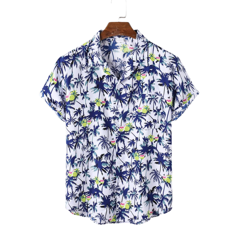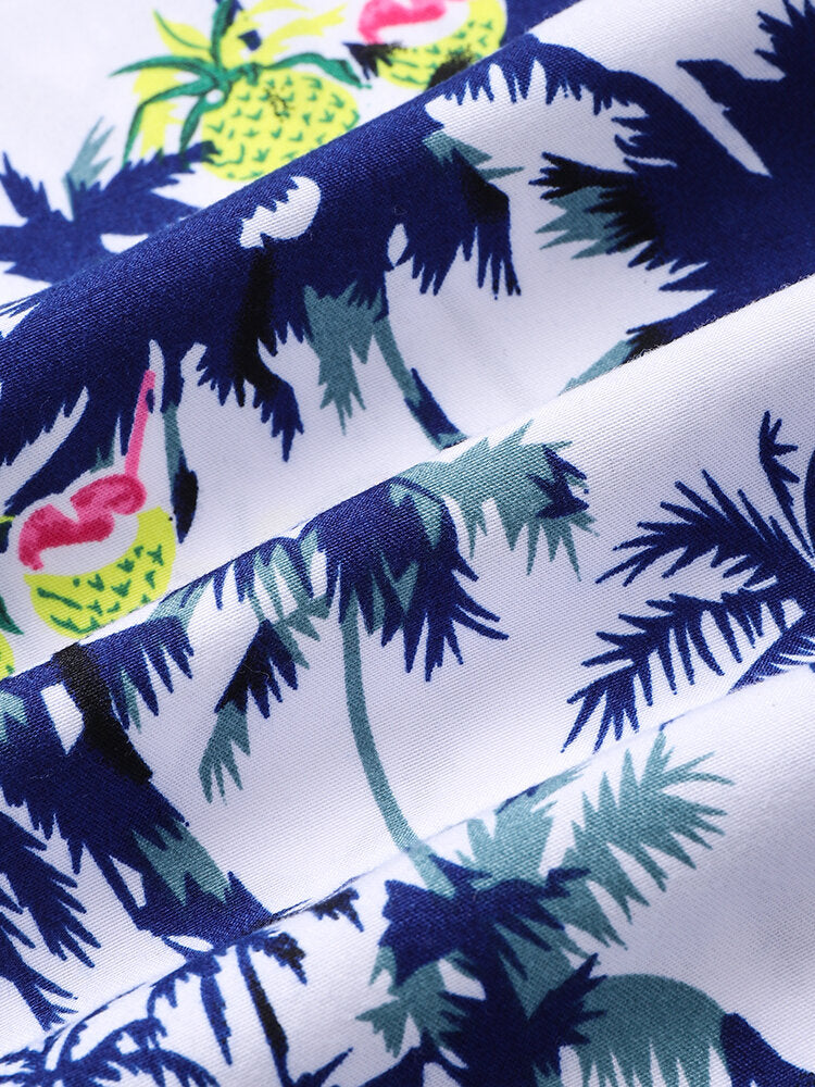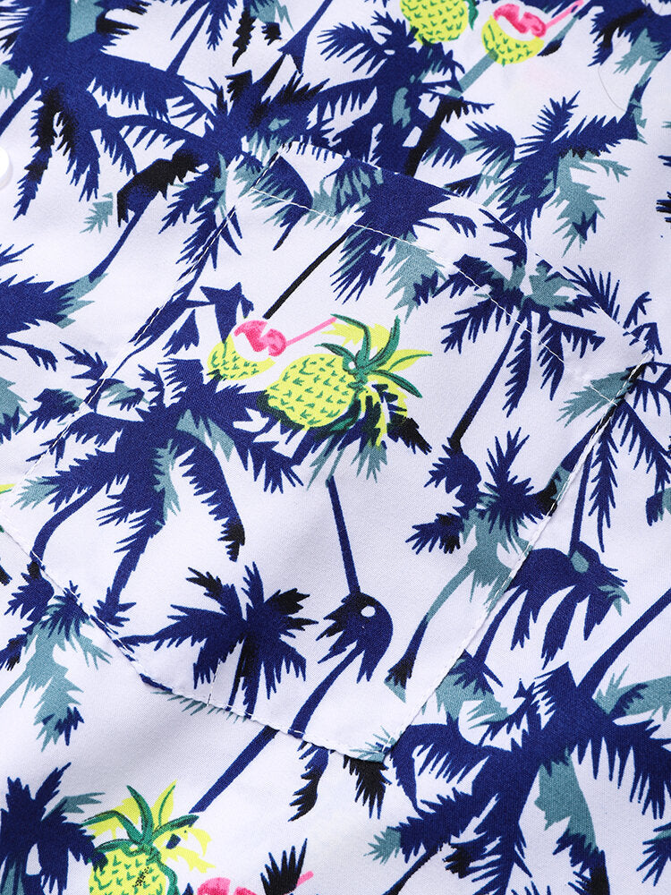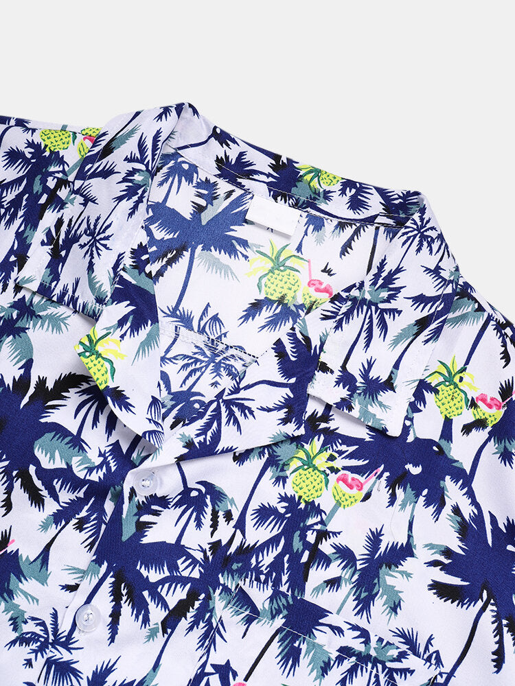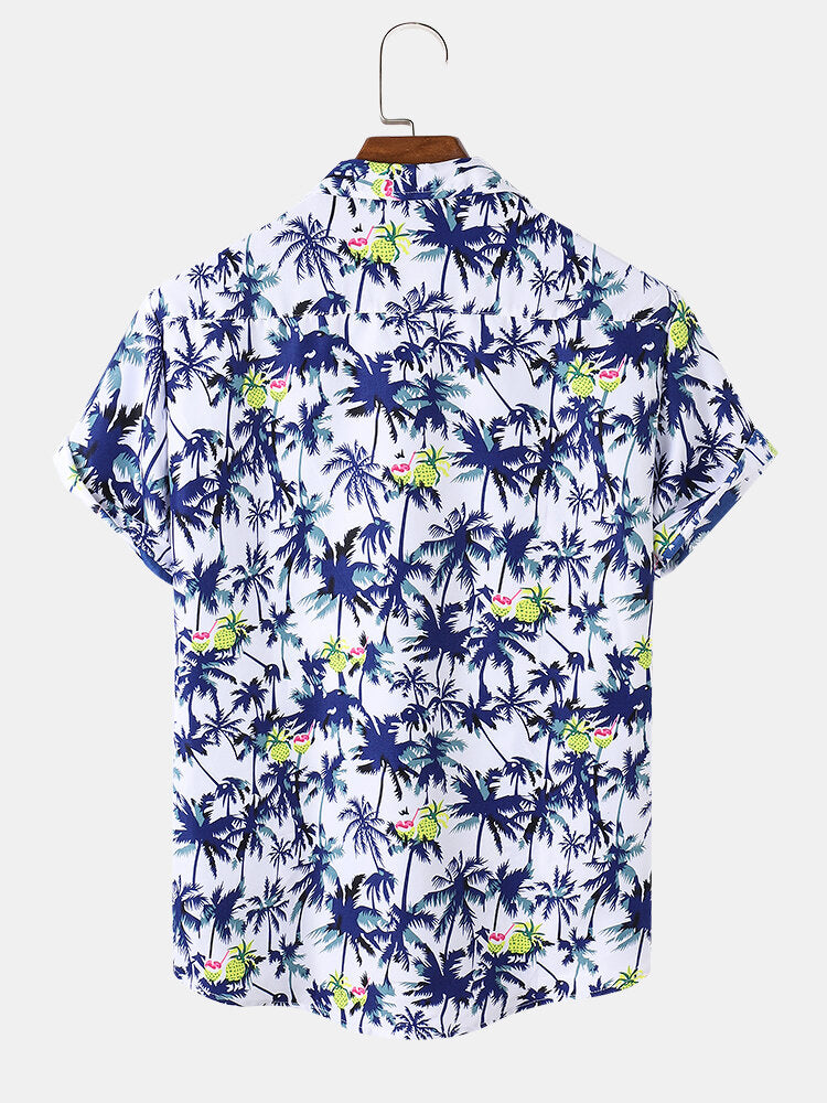 Men's Cotton Coconut Revere Collar Tree Print Short Sleeve Shirt