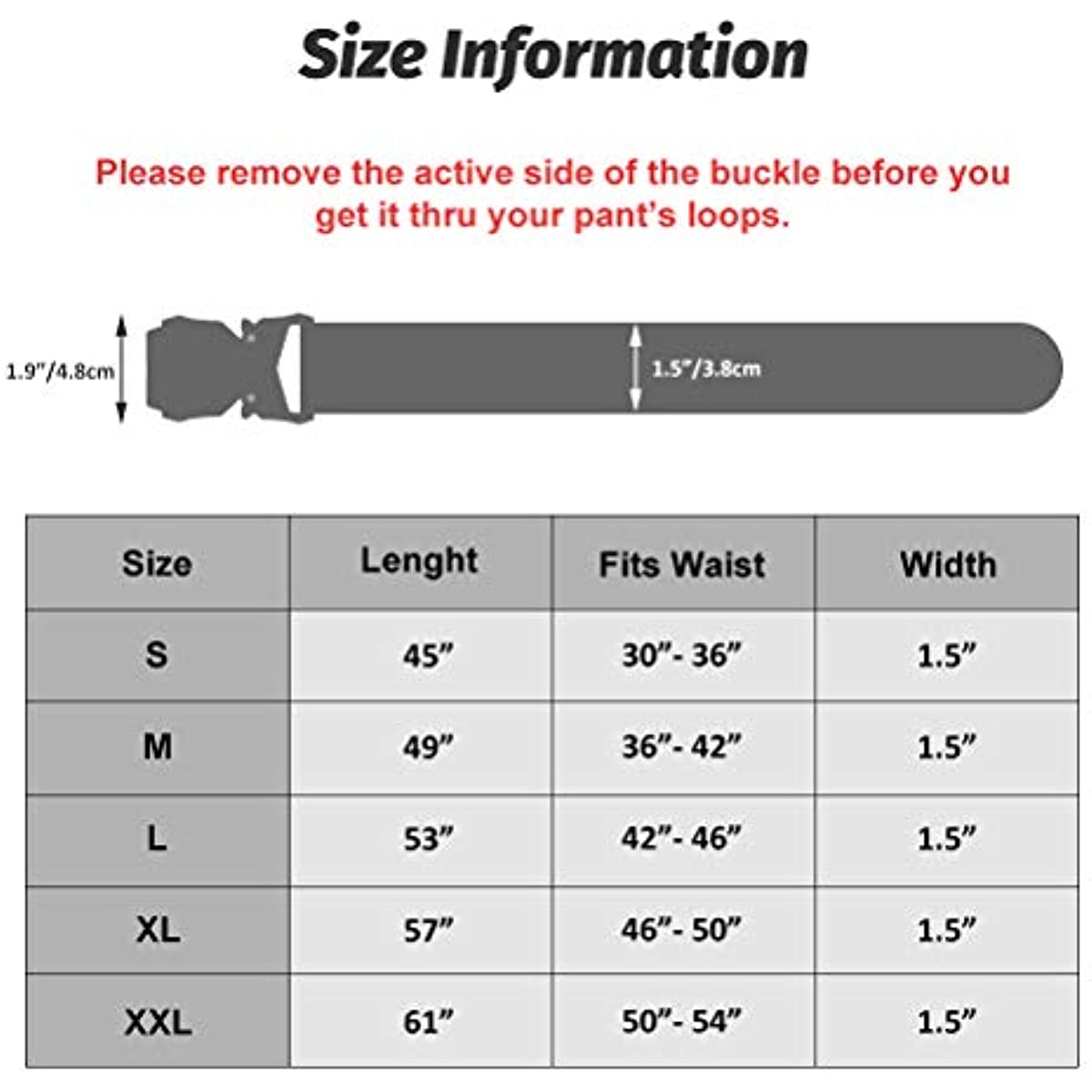 Note:Please do not use the buckle get through your pants' loops.