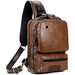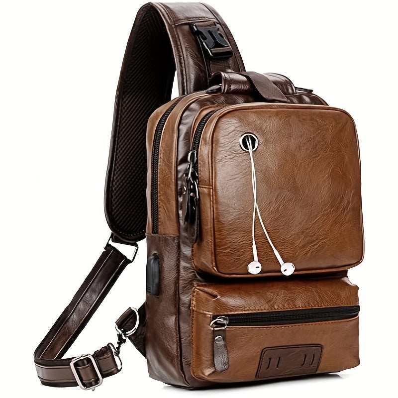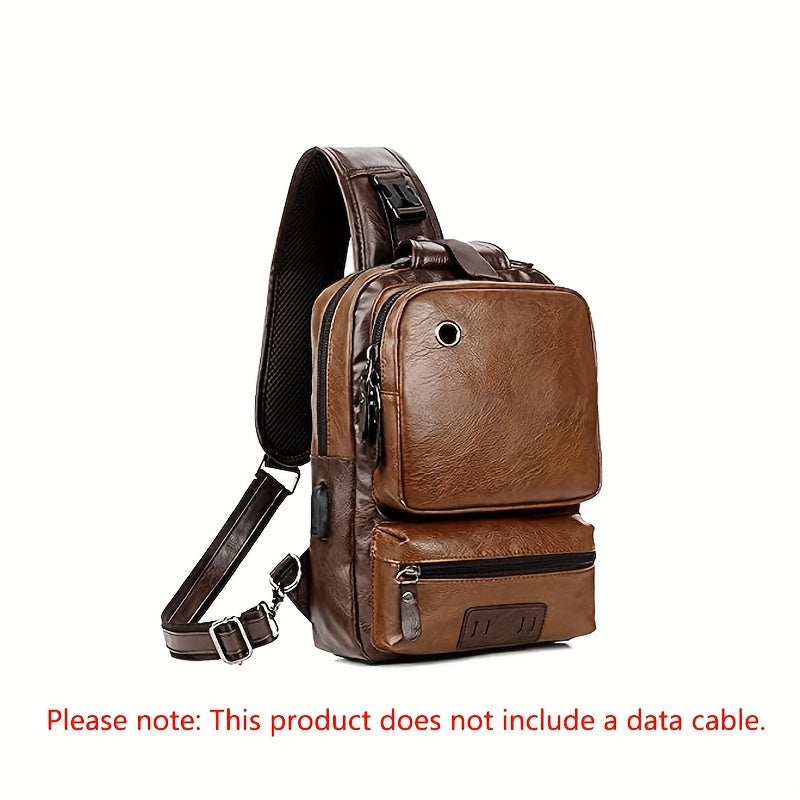 Retro PU Leather Men's Women's Chest Bag With Earphone Port Business Student Commuter Crossbody Bag